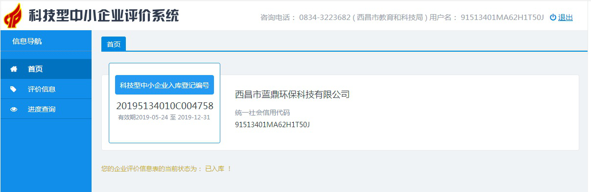 西昌市藍(lán)鼎環(huán)?萍加邢薰尽⑴手ㄊ兴{(lán)鼎環(huán)?萍加邢薰居5月10日同時(shí)通過(guò)四川省科學(xué)技術(shù)廳科技型中小企業(yè)認(rèn)證審核,并在5月10日至5月23日進(jìn)行網(wǎng)上公示,年5月24日兩公司均公示合格獲得科技型中小企業(yè)認(rèn)證入庫(kù)編號(hào)。