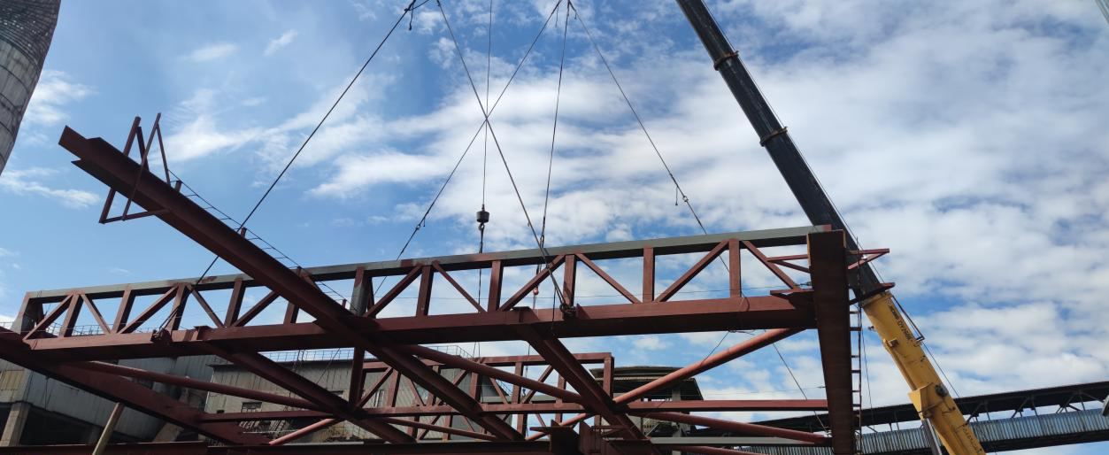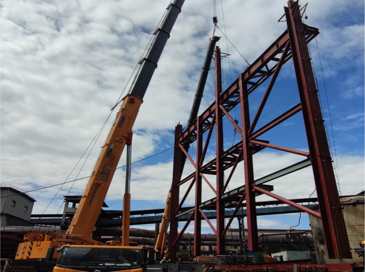 5月18日,西昌藍(lán)鼎中控室背后原氨法脫硫一期位置,伴隨著兩臺(tái)吊車發(fā)動(dòng)的轟鳴,最后一面高達(dá)18米,重達(dá)46噸的鋼結(jié)構(gòu)框架成功定位在一期脫硝承臺(tái)立柱上。這標(biāo)志著攀鋼集團(tuán)西昌鋼釩有限公司燒結(jié)2×360㎡燒結(jié)煙氣超低排放改造項(xiàng)目一期脫硝第一次立裝框架圓滿完成,同時(shí)也標(biāo)志著本項(xiàng)目施工進(jìn)入一個(gè)全新的階段。